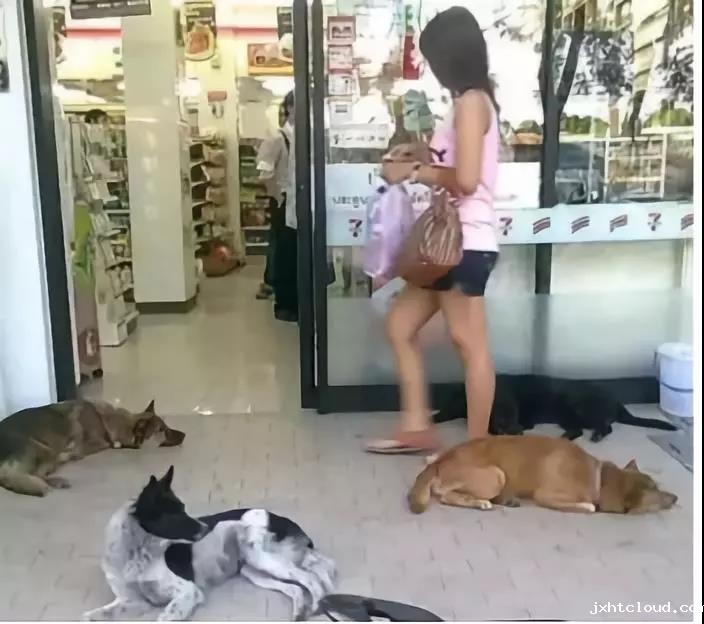 地处热带的泰国常年气候炎热,在那经常可以看到这样的画面:流浪动物们横七竖八地躺在超市门口,享受着店内的空气,一点也不怕人。
