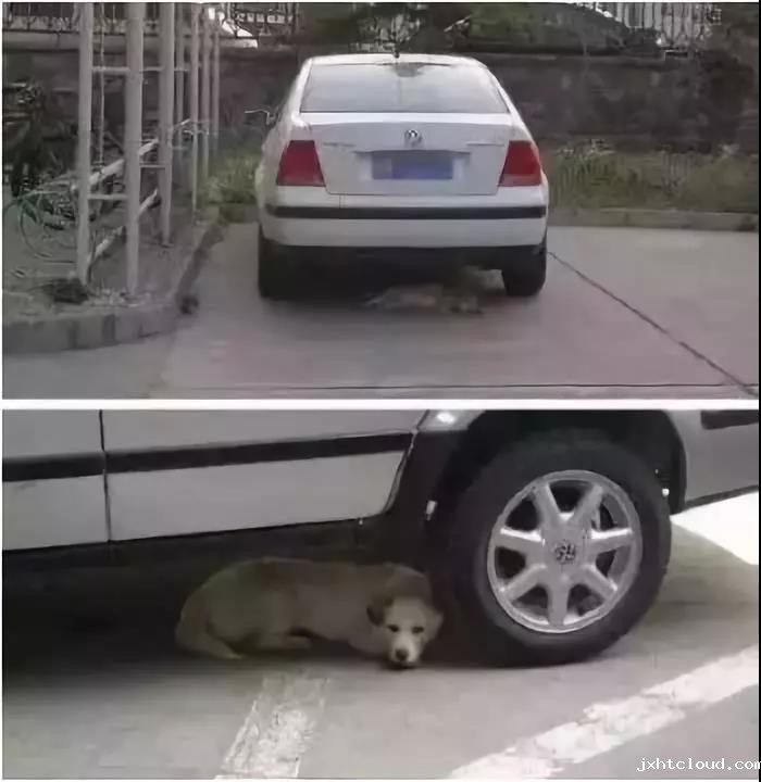 炎热的天气,狗狗有时会躲在汽车底下乘凉,请大家在开车前留意一下,避免无意的伤害。