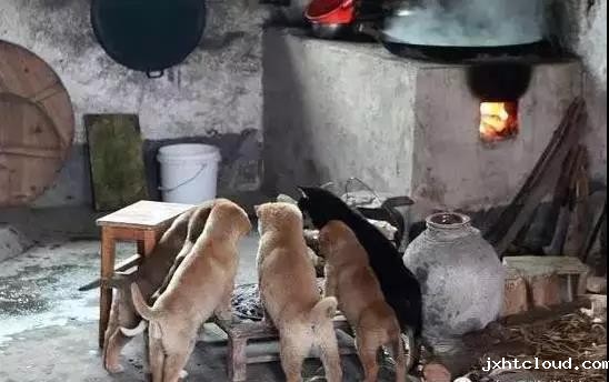 估计是天气太冷了,主人就生起了火炉,然后汪们就聚在一起烤火取暖。